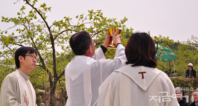 김 신부는 “미사는 하느님의 은총과 인간의 정성이 만나는 장”이라면서, “우리는 또 다른 미사의 현장인 이 삶의 현장에서, 엠마오의 제자들처럼 우리의 눈을 뜨게 해줬던 밀양의 할매, 할배들, 죽어가는 어린 영혼들을 보며 더 깊이 눈뜨고 부활의 현장을 마주하자”고 말했다.