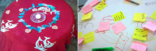 하루하루가 지나면서, 나는 나보다 훨씬 젊은 리소토 수녀님들의 마음이 느껴졌다. 리더도 되고 싶고 하고 싶은 것은 많은데, 자원은 부족해서 자신은 없고, 그래도 할 일은 자꾸 보이는…… 그런 안타까운 마음들 말이다. 각자가 꿈꾸는 글로벌한 자매애를 표현해 보는 작업을 하면서 한쪽 벽에는 형용사를, 한쪽 벽에는 동사를, 또 다른 한쪽 벽에는 이미지를 그려보라고 했다. 뿌리내리기, 나무, 기꺼운(willing), 장미와 가시 등의 단어들을 통해 우리가 꿈꾸는 것, 그리고 글로벌한 자매가 되고 싶다는 것이 무엇인지가 서서히 드러났다.