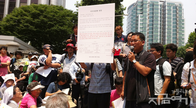 지난 11일 밀양 송전탑 건설 현장에서 벌어진 농성장 철거에 대해 항의하고 지속적인 싸움을 선언하기 위해 밀양 주민들이 상경 투쟁에 나섰다.