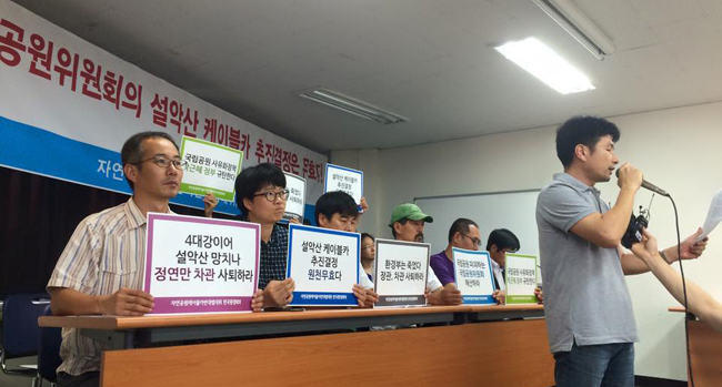 한편, 설악산 케이블카 사업을 반대해 온 ‘자연공원케이블카반대 범국민대책위원회’와 ‘한국환경회의’ 등은 9월 1일 오전 서울 명동 가톨릭회관에서 기자회견을 열고, 케이블카 사업 저지를 위한 집단 소송, 감사원 감사 청구 등을 추진하겠다고 밝혔다.