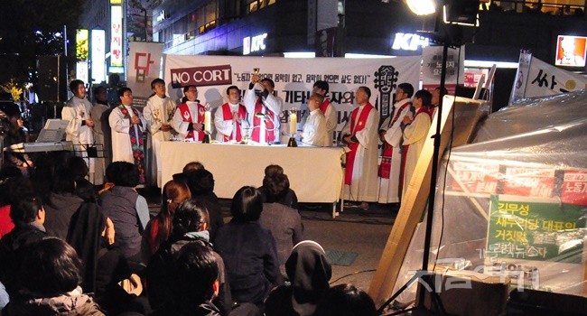 11월 12일 예순을 바라보는 방종운 지회장이 새누리당 김무성 대표에게 사과를 요구하며 단식을 한지 39일째, 그와 함께하는 미사가 열렸다.