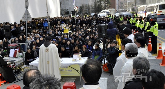 천주교 신자 300여 명이 주한 일본대사관 앞에서 위안부 문제 해결을 촉구하는 미사를 봉헌하고, 청계광장까지 침묵행진을 벌였다.