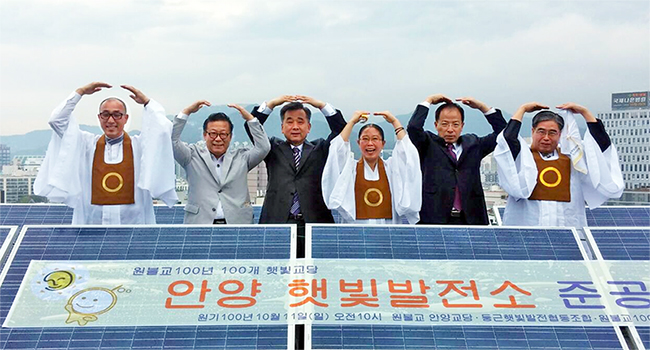 원불교가 100년을 맞아 “물질이 개벽하니, 정신을 개벽하자”는 개교 표어에 맞춰 전국 100개의 교당에 햇빛발전소를 설치했다.