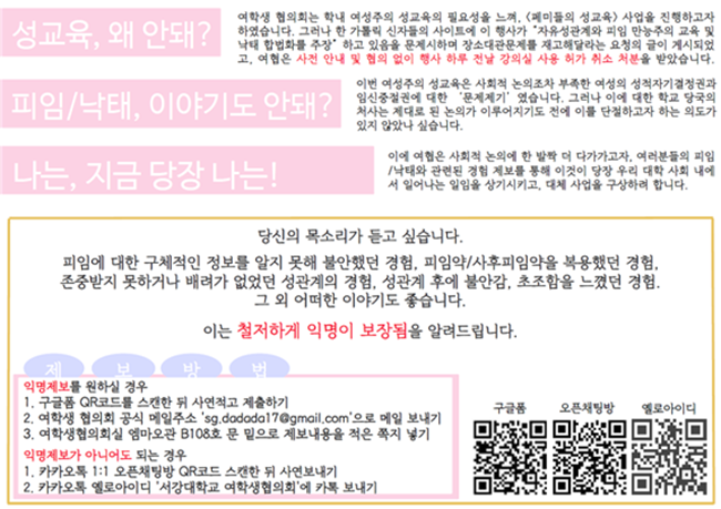 서강대, 페미들의 성교육 대관 취소, “다음에는 논의 거치겠다.”