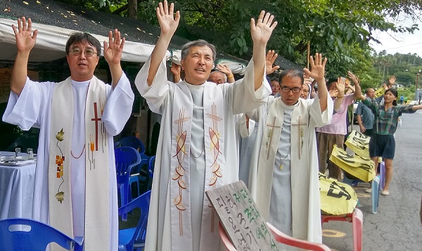 또한 문 주교는 복음에서 스승이신 예수님께서 제자들에게 “사람들 앞에서 두려워하지 말고 당당하게 복음을 선포하라”고 분명하게 말씀하신 것처럼, 간절한 믿음과 희망을 품고 기도하는 사람이 있는 한 하느님의 정의는 이 땅에 실현될 것이라며 강정 거리 미사를 만들어 가는 사람들을 위로하고 격려했다.