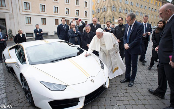 프란치스코 교황이 새로 나온 고급 차인 람보르기니 우라칸 한 대를 람보르기니 사에게 선물 받았다.