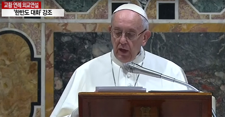 지난 8일 프란치스코 교황은 외교단을 면담한 자리 연설에서, “상호 신뢰를 증진하며 한국인과 전 세계를 위한 평화로운 미래를 확보하면서 현재의 분쟁들을 극복할 새 길을 찾기 위해, 한반도에서의 대화를 지향하는 모든 노력을 지지하는 것이 엄청 중요하다”고 했다.