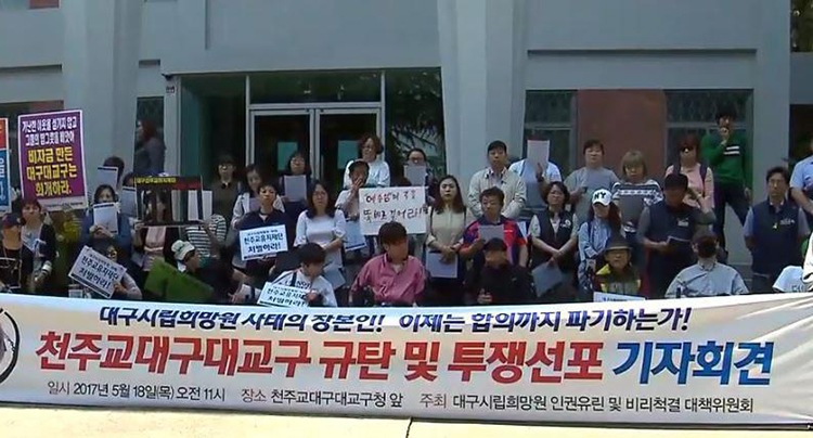 ‘대구시립희망원 인권유린 및 비리척결 대책위원회’가 전 희망원 총원장 신부를 복귀시킨 대구대교구의 사제인사를 "비상식적"이라고 17일 비판했다.