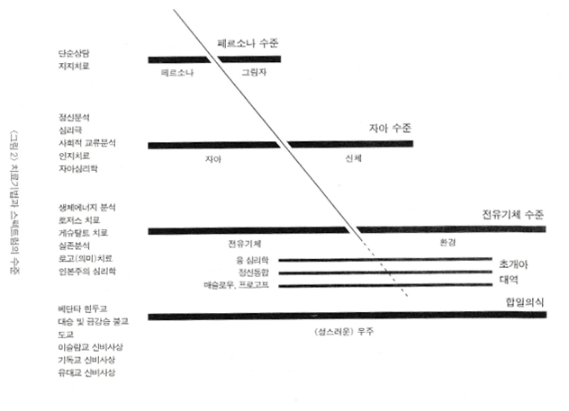 그 조각들을 한 줄로 꿰는 통합적 인식의 지평을 전망한 켄 윌버는 역설적으로 해체의 방법론을 사용한다. 20세기에 이르기까지 지속적으로 세분화된 각 인간이해의 관점들과 방법론들이 동시에 공존 가능할 뿐 아니라, 각기 다른 관점으로 시작된 인간이해의 방법들은 그 인식의 경계를 허물 때 "나"로 인식하던 인격(페르소나)이나 그림자가 해체되는 것이 아니라, 그 사이의 경계와 갈등이 허물어진다는 것이다.