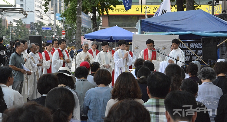 7월 25일 대한문 앞 분향소에서 봉헌된 이날 미사는 수원교구와 서울, 인천, 수도회 사제단이 함께 집전했으며, 100여 명의 신자, 수도자들이 참석했다.