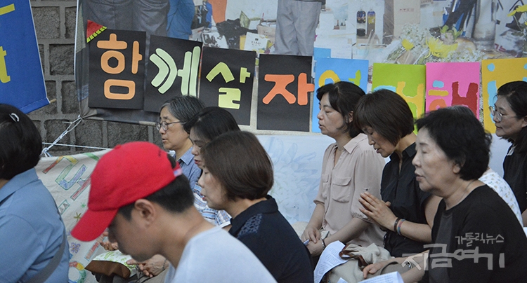 김 신부는 이곳에서 천막을 지키고 미사를 하는 이들이 희망이 되고 길 잃은 이들에게 촛불 한 자루가 되어야 한다며, “그러니 여러분은 사라지지 말라. 힘들지만 평화와 민주주의를 지키려는 노력을 한다면 우리가 곧 평화가 될 것이다. 사라지지 말고 촛불 하나 밝혀 들고 이 세상을 밝히자”고 당부했다.