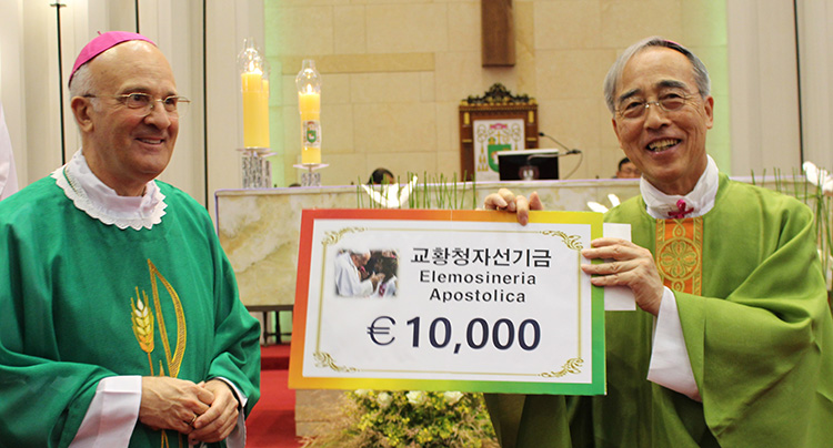 주한 교황대사 알프레드 슈에레브 대주교가 제주교구를 방문해 프란치스코 교황의 자선기금을 전달했다.