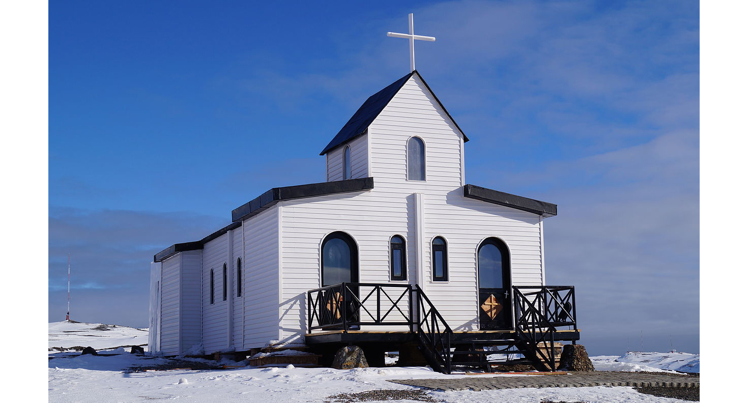 교회는 남극의 악한 조건 때문에, 또 신자의 수가 많지 않기 때문에 클 이유가 없습니다. 나무를 이용해 지은 교회도 있고, 컨테이너를 사용해 지은 교회도 있습니다. 매우 흥미롭게도 얼음굴을 파고 지은 얼음동굴 교회도 있습니다.