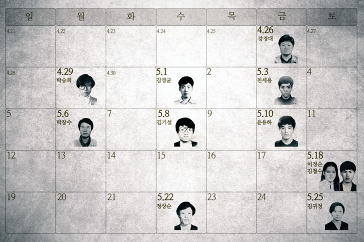 1991년 4월, 학내 민주화를 요구하며 시위를 하던 명지대생 강경대 군이 경찰이 휘두른 쇠파이프에 맞아 숨졌다. 이 사건은 민주화세력의 분노를 자아내며 1980년대 거리 시위를 재연토록 했다. 그러나 정권은 물러서지 않았고, 대중이 운동권을 바라보는 시선은 예전과 조금씩 달라지고 있었다. 그 봄, 11명의 청춘이 목숨을 버렸다. 그리고 그날, 그 사건이 벌어졌다.
