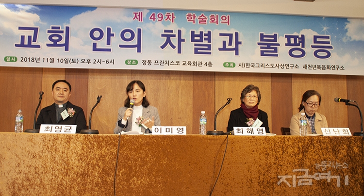 그는 “가톨릭 교회가 여성이 소외되고 고통을 겪는 불평등한 구조를 외면하고 부부 일치만을 강조할 때 차별의 현실은 개선되지 않을 것이며 교회의 가르침은 가부장적 이데올로기라는 비판을 피하기 어렵다”고 강조했다.