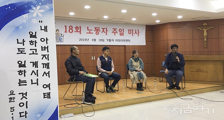 미사 뒤 이어진 이야기 마당에서는 인천 지역사회에서 일어난 노동 현안 당사자들의 이야기를 함께 들었다.