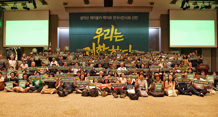 호주의 블루마운틴, 스위스 마터호른이 있다면 우리나라에는 설악산이 있다. 설악산은 천연기념물 17호로 천연보호구역이며 유네스코 지정 생물권 보전지역이다. 전국토의 4퍼센트에 불과한 국립공원 가운데 1퍼센트 밖에 남지 않은 생태보존지역이다. 그래서 설악산은 5개의 보호구역으로 정해 천연기념물 제217호, 멸종위기 1급 종인 산양과 멸종위기종 2급인 삵, 담비, 하늘다람쥐, 까막딱따구리 등 멸종위기 야생동물들을 보호하고 있다. 이 설악산에 자본과 개발의 논리로 끊임없이 케이블카 사업이 추진되었지만 2012년, 2013년 모두 무산되었다. 설악산은 보전가치가 우선이라는 국립공원위원회의 판단이었다.