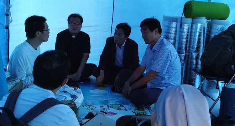 단식 44일 김수억 씨 방문, 도로공사 경찰력 행사 중단 촉구