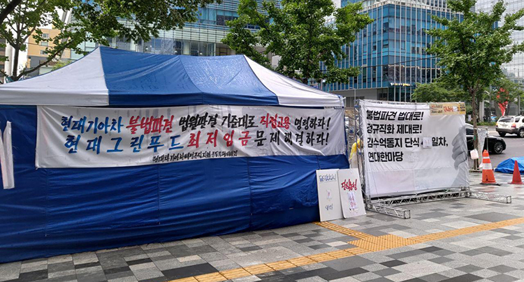 이에 김 지회장은 고용노동부가 기아차에 불법파견 노동자들을 직접 고용하라고 시정명령할 것을 요구하며 지난 7월 29일부터 단식에 들어갔다.