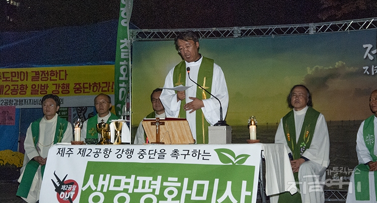 제주 제2공항 강행 중단을 촉구하는 생명평화 미사가 봉헌됐다.