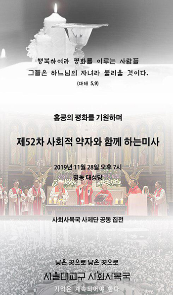 서울대교구 사회사목국이 “홍콩의 평화”를 위한 미사를 봉헌한다.