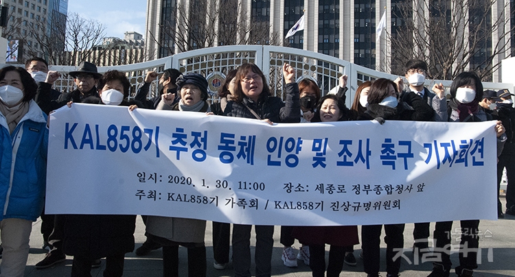 ‘KAL858기 사건 진상규명위원회’와 ‘KAL858기 가족회’가 1987년 실종된 해역에서 최근 발견된 KAL858기 추정 동체를 즉각 인양, 조사하라고 정부에 촉구했다.