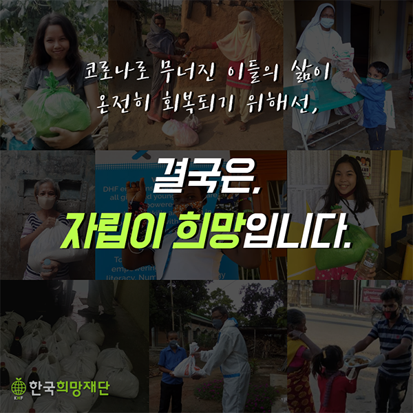 이러한 상황들을 외면할 수는 없기에, 한국희망재단에서는 지난 4월부터 인도(비하르 주), 네팔(고르카 지역), 방글라데시(다카 지역), 필리핀(보홀 섬, 세부 시), 부룬디(부반자 및 치피토케 주) 내 취약계층을 중심으로 식량이나 마스크, 비누 등 위생용품을 긴급지원해 왔으며, 코로나19 감염 예방을 위한 위생교육도 함께 진행하였습니다. 또한 국내 이주노동자 및 난민 가구에도 긴급생계비를 지원하였습니다.