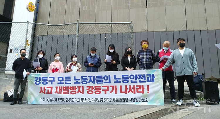 이날 강동노동인권센터 등은 “‘노동 존중 강동구’를 표방하는 강동구가 직접 나서 노동자 산재 사망의 원인을 밝혀야 한다”면서 “노동자들의 안타까운 사망 소식은 오늘도 생명의 위협을 느끼며 일하는 또 다른 노동자들과 주민들의 불안감을 증폭시키고 있다”고 말했다.
