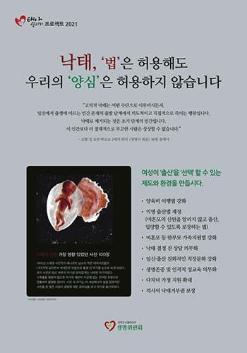 서울대교구 생명위원회는 ‘태아살리기 프로젝트 2021’ 추진을 통해 이 같은 제도 보완을 위한 캠페인을 진행하고 있다.