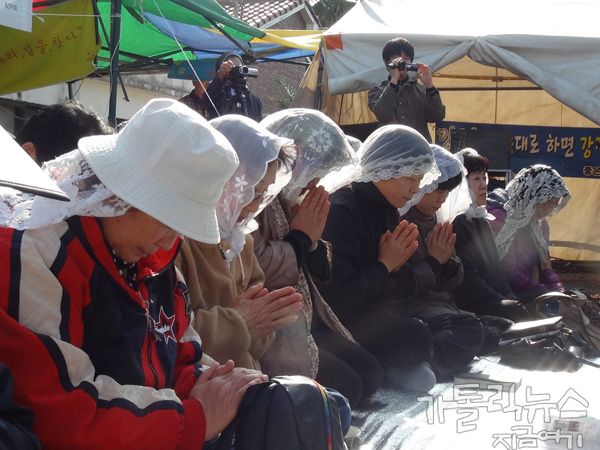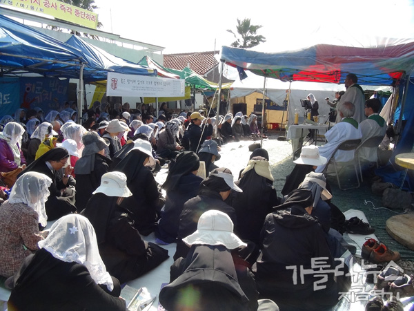 두 번째이다. 4년 전, 강우일 주교님이 교회의 가르침에 따라 해군기지 반대를 천명한 다음, 전 교구 사제들이 의지와 희생을 결단하는 의미에서 교구청에 모여 7일 단식기도를 했다. 이번에는 구럼비 발파에 따른 위급한 상황 속에서 서울에서 단식을 하고 있는 신부들과 연대하기 위해 강정현장에서 단식기도를 하게 됐다.