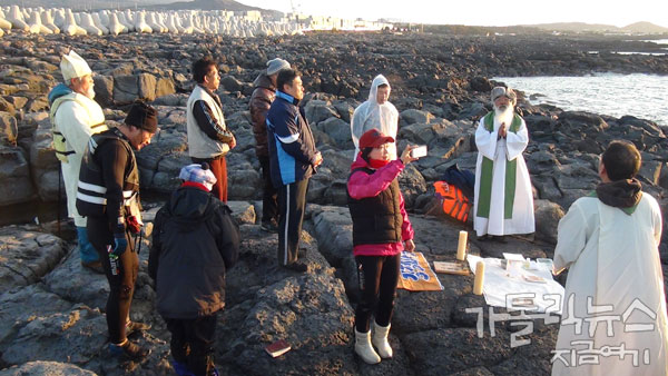 2월 12일 주일에 오전 7시 제주 강정 구럼비 바위 위에서 미사가 봉헌되었다. 지난 해 9월1일 이병호 주교(전주교구장)이 집전하고 제주교구와 전주교구 신부들이 참석했던 미사를 봉헌한지 164일 만의 일이었다.