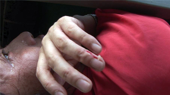 문 시의원은 헬기의 이륙을 막기 위해 곧장 헬리콥터가 있는 곳으로 뛰었다. 하지만 동양건설 소속 직원들에게 제지를 당하면서 쓰러진 문 시의원은 남성 7~8명에게 몸을 짓눌리는 결박을 다시 20여분 동안 당했다. 4공구 사무소 현장 땅바닥은 자갈로 덥혀 있다.