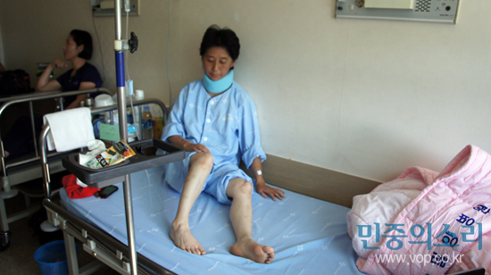 현재 밀양병원에 입원 중인 문정선 시의원은 전신에 타박상을 입어 등과 다리 등에 멍이 퍼져 있는 상태다. 또, 목뼈가 경직돼 통증을 호소하고 있다. 같은 날 출입문에 몸이 끼여 쓰러졌던 성은희 씨도 함께 입원해 있다.