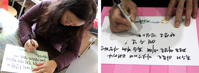 “아기 예수 나신 성탄의 빛이 밀양, 강정, 쌍차, 철도노조, 장애인, 성소수자, 청소년, 그리고 멍들어 있는 우리의 가슴에 두루 비추소서!” ―섬돌향린교회 임보라 목사