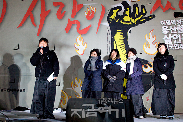 지난 1월 23일, 설 명절 휴가를 하루 앞두고 '이명박 정권 용산 철거민 살인진압 범국민대책위원회'에서는 참사의 책임을 철거민에게 뒤집어 씌우려는 이명박 정권과 검찰의 수사에 항의하며 유족들과 함께 서울 서초동 서울지방검찰청 앞에서 기자회견을 하여 "사실을 왜곡하기 위한 사기극의 서막"이라고 비판하였다.