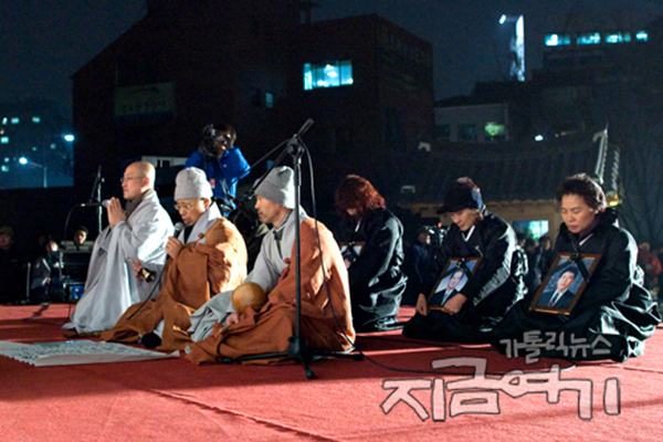 불교계 시국법회추진위원회(공동추진위원장 수경스님)는 지난 5일 서울 조계사에서 용산 참사로 희생된 이들을 추모하고 유가족들의 아픔을 함께 나누는 시국법회를 열었다.