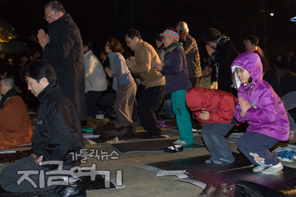 이 자리에서 수경스님은 “국민의 기본권을 가벼이 여기는 정부의 천박한 인권의식이 용산참사의 본질”이라며 “한국사회에는 종교계를 비롯한 지성계도 다 무너져 사회적 지도층이라 할 만한 집단이 없지만 우리 모두가 자타불이(自他不二)의 정신으로 세상을 바꾸어 갈 때”라고 강조했다.