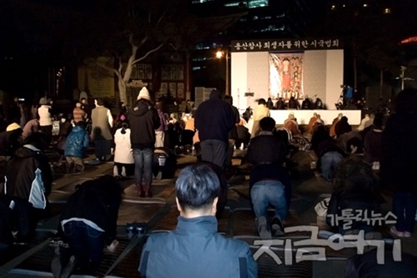유가족을 비롯해 500여 명이 참여한 이날 법회에서 주최측은 “국민위에 군림하고자 하는 정부는 더 이상 대한민국의 정부일 수 없다”고 규탄하며 △국민 앞에 참회 △책임자 엄중 문책 △근본적인 재개발대책 강구 △구속된 철거민 석방 △용산참사 진실 규명 등을 촉구했다.