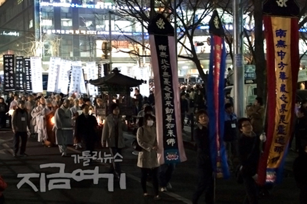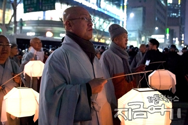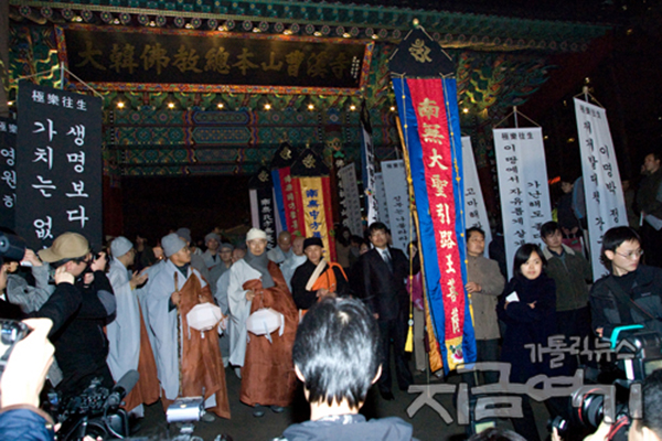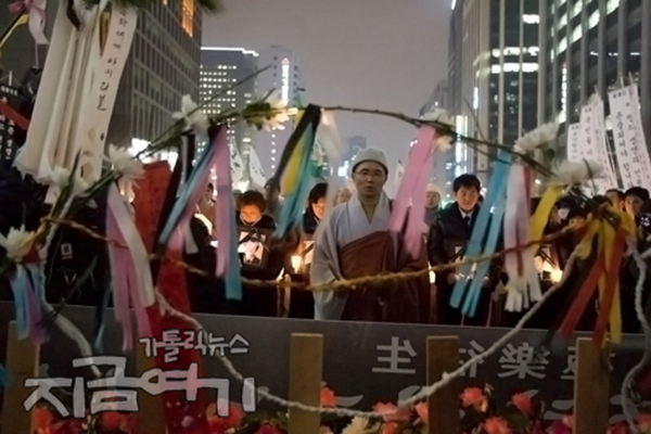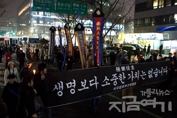 시국법회가 끝난 뒤 참가자들은 ‘생명보다 소중한 가치는 없습니다’라는 문구가 새겨진 현수막을 앞세우고 조계사 일주문을 나서 추모행렬을 이어갔다.