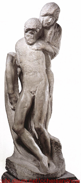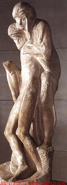 이제 피에타는 마리아의 무릎에 안겨져 있던 이전 것과는 다른 유형을 보인다. 또 이상적 조화와 균형을 보여주었던 모습과도 다르다. 언뜻 보기에도 추상적으로 보이는 이 피에타는 미켈란젤로의 또 다른 작품 성향을 보여준다. 이러한 요셉의 부축을 받는 피에타의 예는 <그림 16>에서도 볼 수 있다. 이 경우는 아예 마리아는 배제한 채 요셉과 예수만을 볼 수 있다.