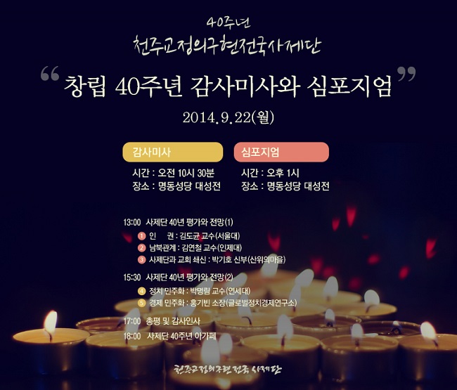 오는 22일(월), 천주교정의구현전국사제단의 창립 40주년 감사미사와 심포지엄이 열린다.