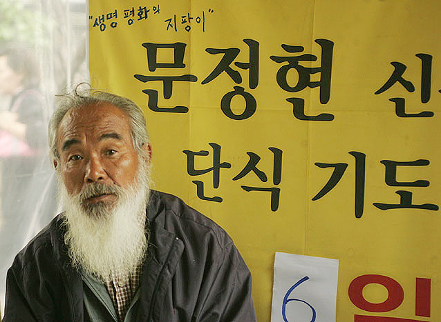 2006년도 평택의 미군기지 반대를 위해 문정현신부는 청와대 앞에서 단식기도를 진행했다.