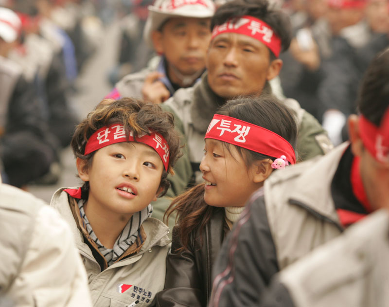 집회모습이 신기한듯 주변을 두리번 거리는 어린이들,