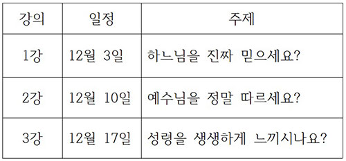 12월 3일부터 ‘그리스도교 신앙의 근거’ 주제로 3회, 한상봉 강의