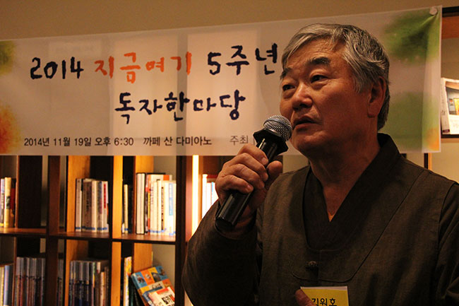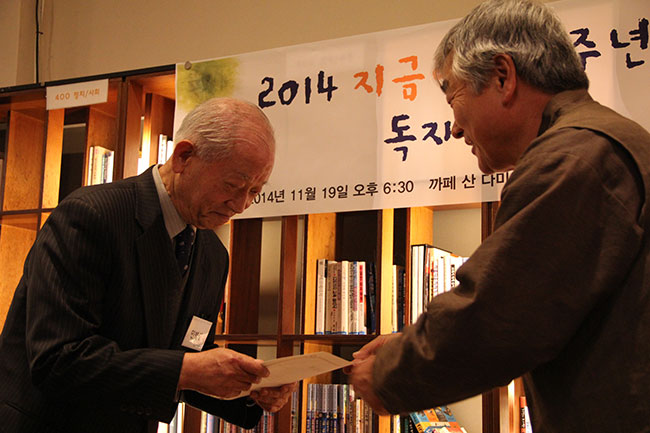 이 자리에서 지금여기 창간 초기에 초대 상근기자로 활동했던 고동주 님이 ‘이바지상’을, 독자모임인 ‘빛따라 길따라’에 열심히 참석했던 민병설, 김진희, 이상헌 님이 ‘어울림상’을, 후원독자 대표로 조재형 님이 ‘함께걸음상’을 수상했다.