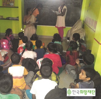 신분상의 차별로, 또는 빈곤 문제로 교육 기회를 얻지 못했던 이 곳 달리트 아이들에게 야간학교는 맘 편히 공부할 수 있는 유일한 공간입니다. 얇은 판자로 얼기설기 지어져 비가 오면 빗물이 새고 폭우에 건물 일부가 붕괴되기도 했지만, 공부할 수 있다는 자체만으로 아이들은 행복합니다.