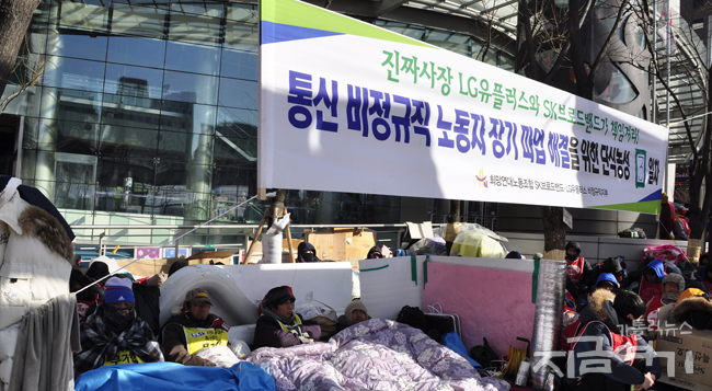 SK브로드밴드와 LG유플러스 통신 비정규직 노동자들은 고용불안과 노동환경개선 등을 요구하며 원청과 교섭했지만 성과가 없자, 지난해 11월부터 노동자 1700여 명이 전면 파업에 나섰다. 그러나 원청인 SK와 LG는 책임을 하청업체와 한국경영자총협회(이하 경총)에 미루며 협상을 거부하고 있다.