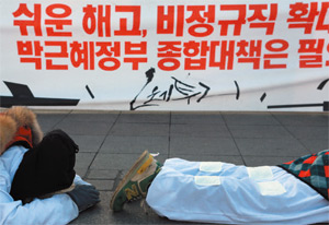 960만 비정규직이 있는 모든 삶의 현장에서 이런 ‘고통’이 뒤따랐다. 이 모든 게 ‘비정규직 법제도 합법화’에 있다는 결론에 도달한 기륭전자 조합원들이 ‘비정규직 법제도 전면폐기’를 위한 오체투지 행진에 나섰다. 춥고 외로운 길이었다. 눈이 녹으며 온갖 오물이 섞인 차가운 물들이 온몸으로 스며들어 왔다. 구토가 날 것처럼 힘든 길이었다. 그 길을 5일동안 지렁이들처럼 기어 국회와 청와대로 향했다. 한국사회 고통의 바닥이 어떠한지를 함께 보자는 행진이었다. 이 바닥에서 한국사회 민주주의는 다시 시작해야 한다는 간절한 소리없는 외침이었다. 느리지만 온몸이 비수나 화살촉이 되어 평범한 이들의 고통을 먹고사는 이 구조의 상층부를 향해 나아가겠다는 눈물겨운 결의였다.