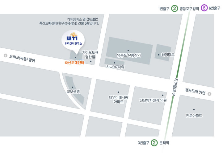 4. KIA MOTORS 옆 <농심家> 축산물도매센터 건물 3층 (교보생명 맞은편 건물)