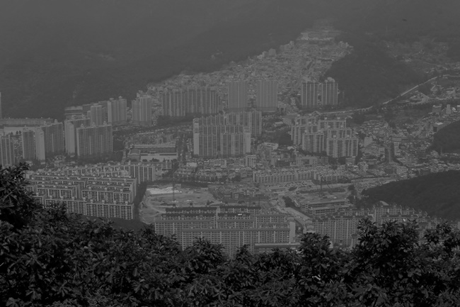 ▲백양산에서 바라본 만덕 5지구의 모습. 만덕은 대부분 고층 아파트 단지로 개발되었고, 유일하게 만덕 5지구만 마을공동체를 이루고 있다.ⓒ 장영식